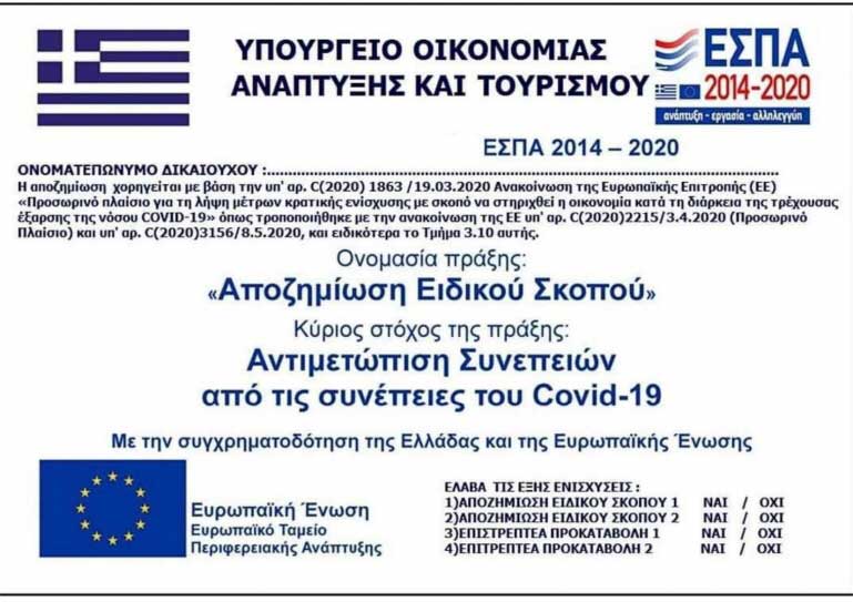 ΕΣΠΑ ΑΠΟΖΗΜΙΩΣΗ ΕΙΔΙΚΟΥ ΣΚΟΠΟΥ